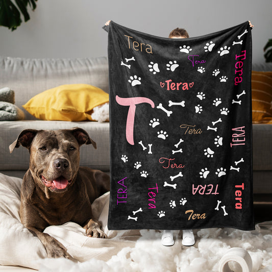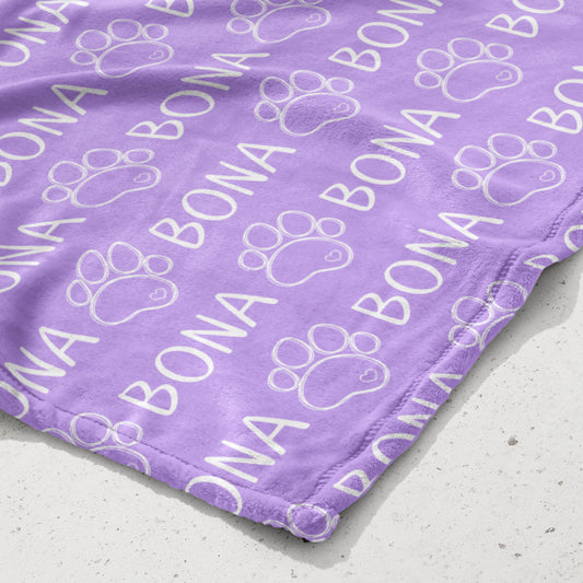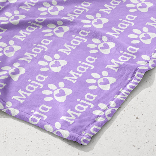 Personalizuotas pledas šuniui su vardu ir pėdutėmis